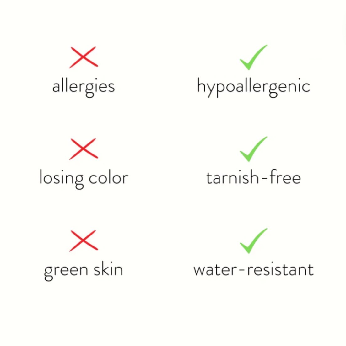 Made with waterproof stainless steel, you never need to worry about fading or tarnishing jewelry ever again!